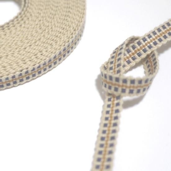 5m巻 木綿真田紐 綿100% 平紐 一重 二分巾 ベージュ×紺